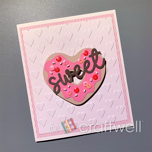 Taking selected cardstocks to cut out shapes using KSCraft heart shape donuts cutting dies and taking So In Love embossing folder to emboss on a plain cardstock.